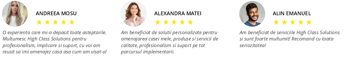 High Class Solutions este partenerul ideal si de incredere pentru realizarea oricarei idei sau schite intr-un produs final spectaculos. Cu siguranta, alegerea mobilierului nu este o decizie usoara, deoarece implica o multime de factori, de la dimensiune, accesorizare, finisaje, culori… etc. Colaborand cu designeri si arhitecti, putem propune si, in acelasi timp, realiza cele mai creative si inovatoare proiecte. Nu in ultimul rand, putem oferi concepte noi pentru pasionatii de frumos care doresc sa-si vada viziunile realizate in realitatea proiectului.Cu o experienta de peste 20 de ani in realizarea mobilierului la comanda, abilitatea echipei tehnice si utilajele de performanta ne permit sa producem piese de mobilier din orice tip de finisaj: lemn masiv, MDF furniruit, MDF, PAL, compozit (Corian, Hi-Macs), piatra (quartz, ceramica) si chiar prelucrarea de structuri metalice ...